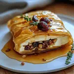 Indulge in the decadence of Baked Brie in Puff Pastry with Honey and Fig, a delightful appetizer that combines rich, creamy brie with the flaky goodness of puff pastry. Topped with sweet honey and fig preserves, this elegant dish is perfect for any gathering, from festive parties to cozy dinners. With minimal preparation and a stunning presentation, it’s sure to impress your guests while tantalizing their taste buds. Warm or at room temperature, this crowd-pleaser pairs beautifully with an array of sides, making it a versatile choice for entertaining.