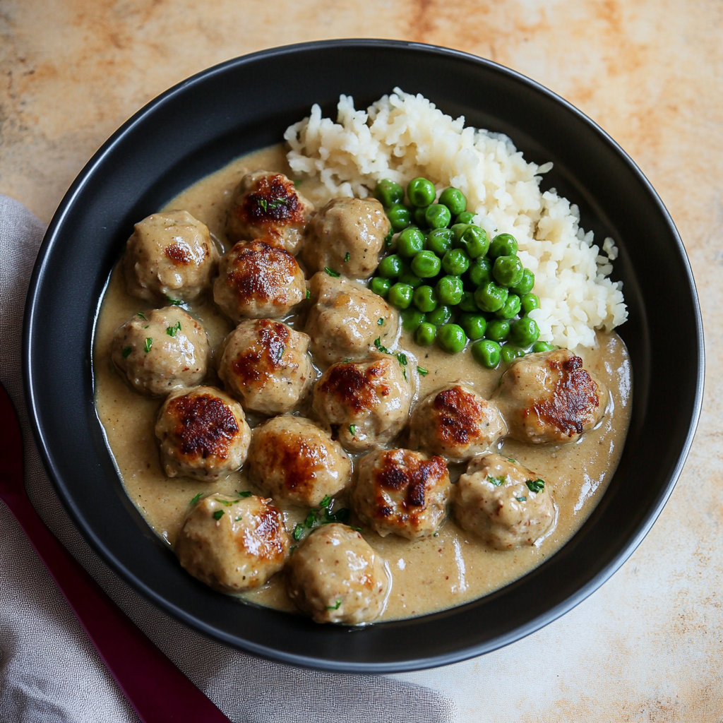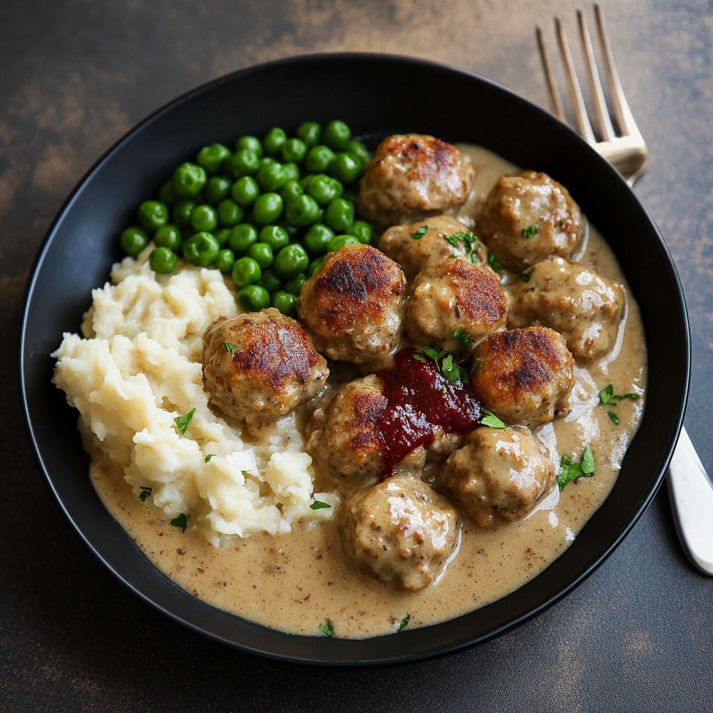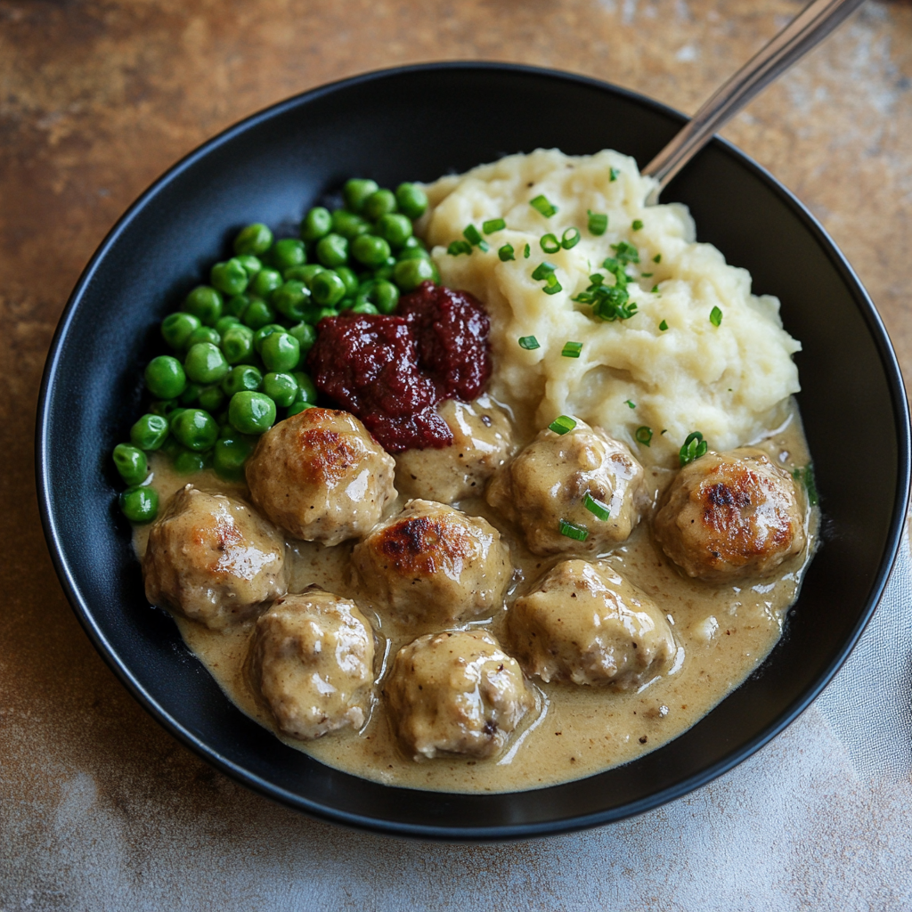 These meatballs pair wonderfully with mashed potatoes, green peas, and lingonberry jam for a traditional touch.