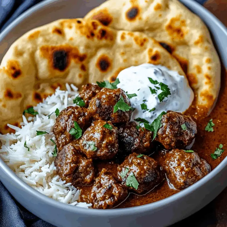 Harissa Beef Meatballs with Yogurt Sauce and Garlic Naan