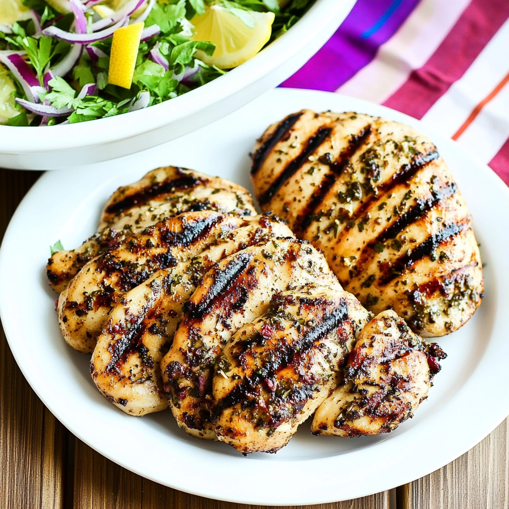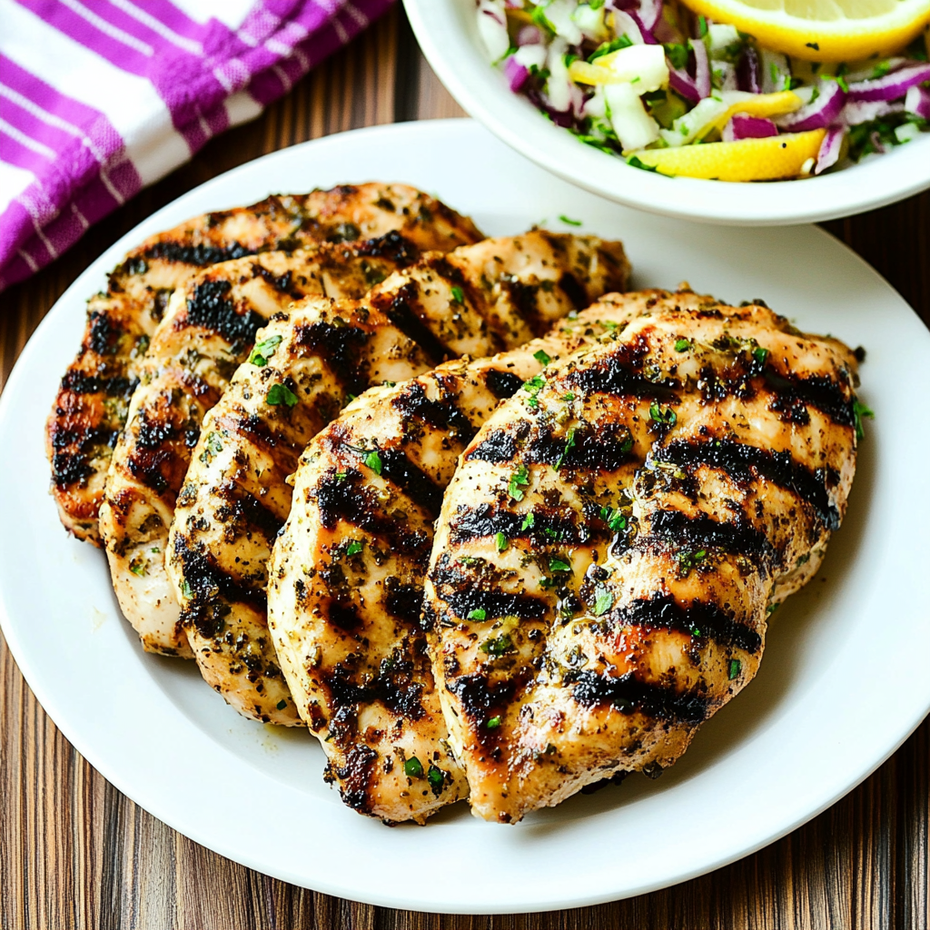 Enjoy your flavorful Garlic, Lemon, and Herb Grilled Chicken Breasts, perfect for any occasion!