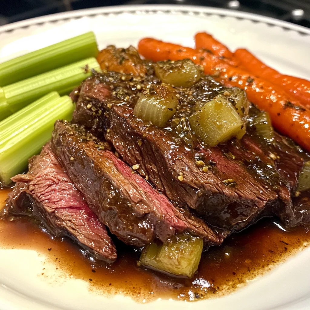 This beef roast pairs well with creamy polenta, mashed potatoes, or crusty bread to soak up the rich sauce.