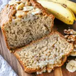 Starbucks Copycat Banana Bread is super moist, loaded with sweet bananas and topped with walnuts. Perfect for breakfast or dessert!