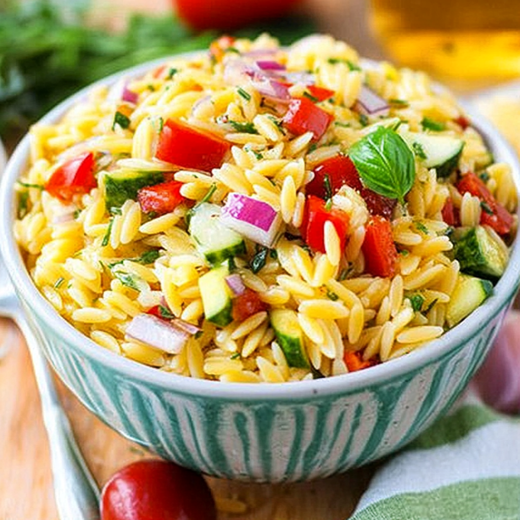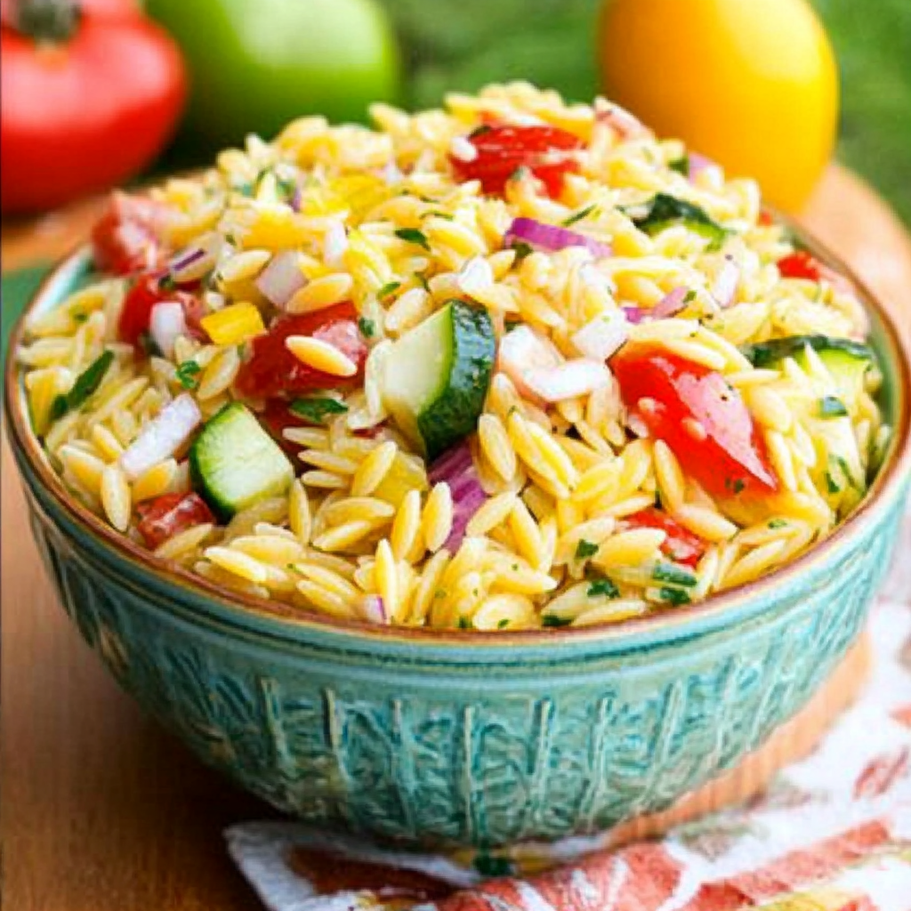 A refreshing, Mediterranean-inspired pasta salad made with tender orzo, crisp vegetables, fresh herbs, and a bright lemon dressing.
